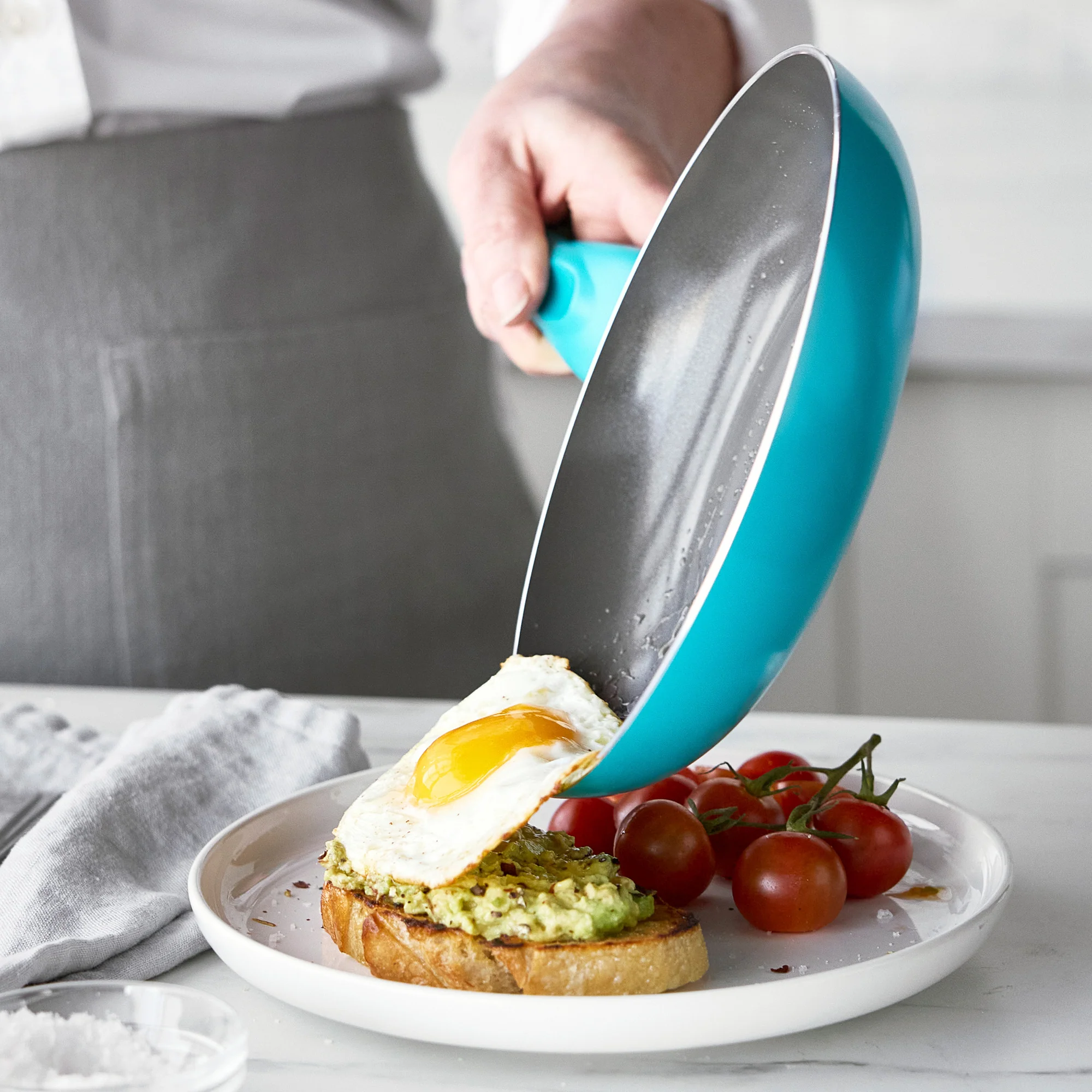 Each piece features our healthy ceramic nonstick and a rivetless interior for healthier cooking and even easier cleaning. The stay-cool handles keep you secure on the stovetop while the clear glass lids keep flavor inside so you can watch your masterpiece come to life.