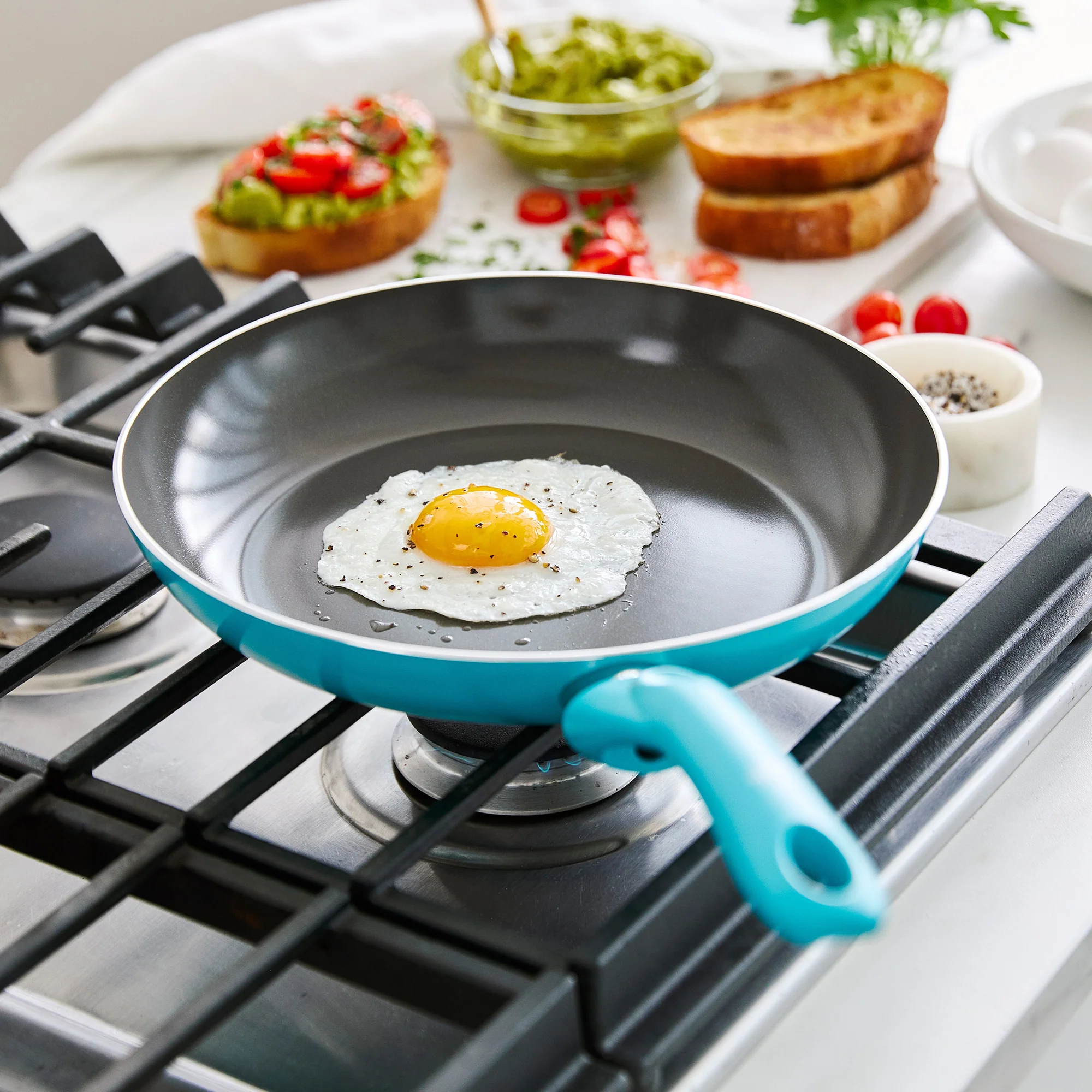 Each piece features our healthy ceramic nonstick and a rivetless interior for healthier cooking and even easier cleaning. The stay-cool handles keep you secure on the stovetop.