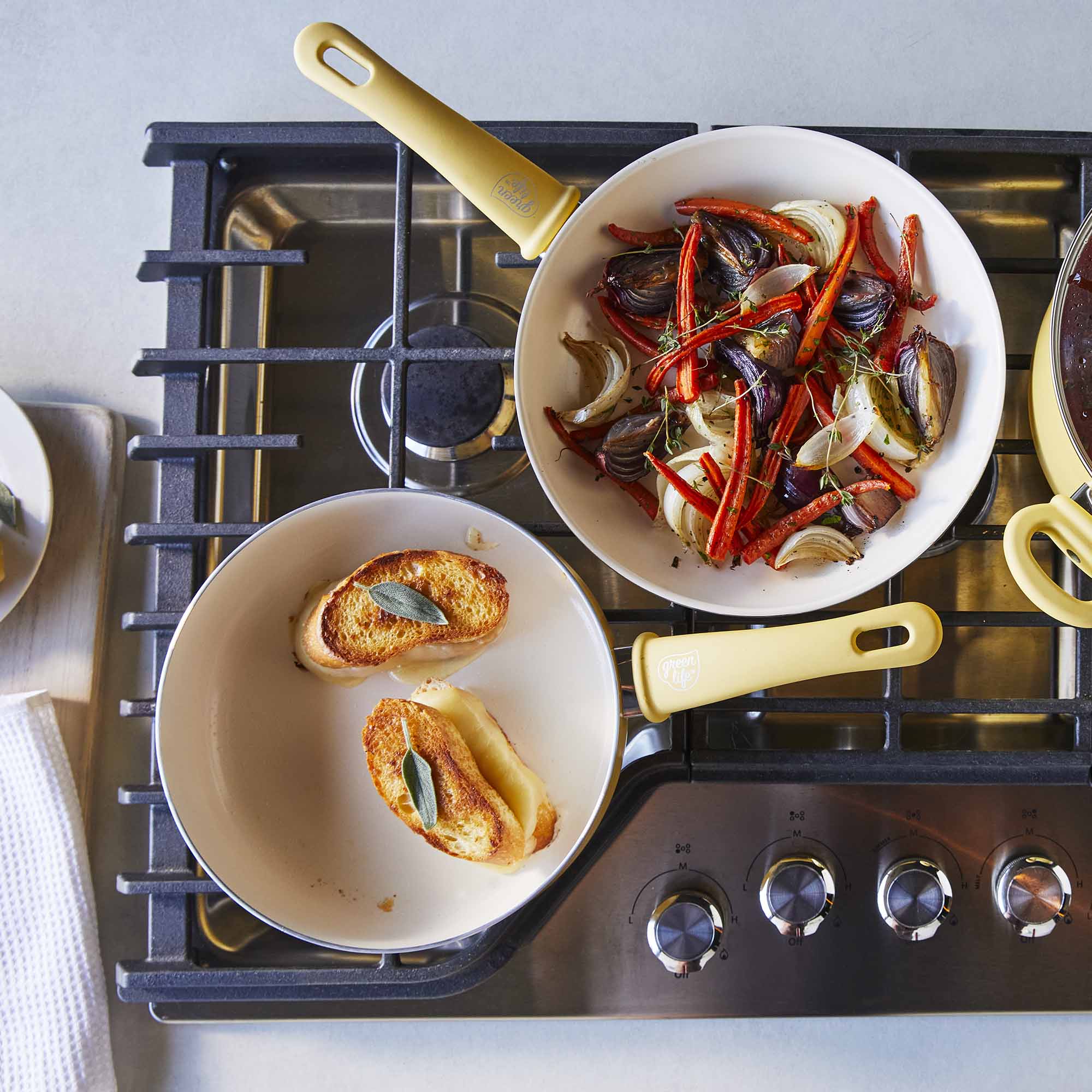 Get a grip—literally! Soft Grip features ergonomic, stay-cool handles that make everyday cooking easier than ever. Our healthy ceramic nonstick coating releases even the stickiest foods (hello, cheese) effortlessly and wipes clean in seconds, no soaking required.