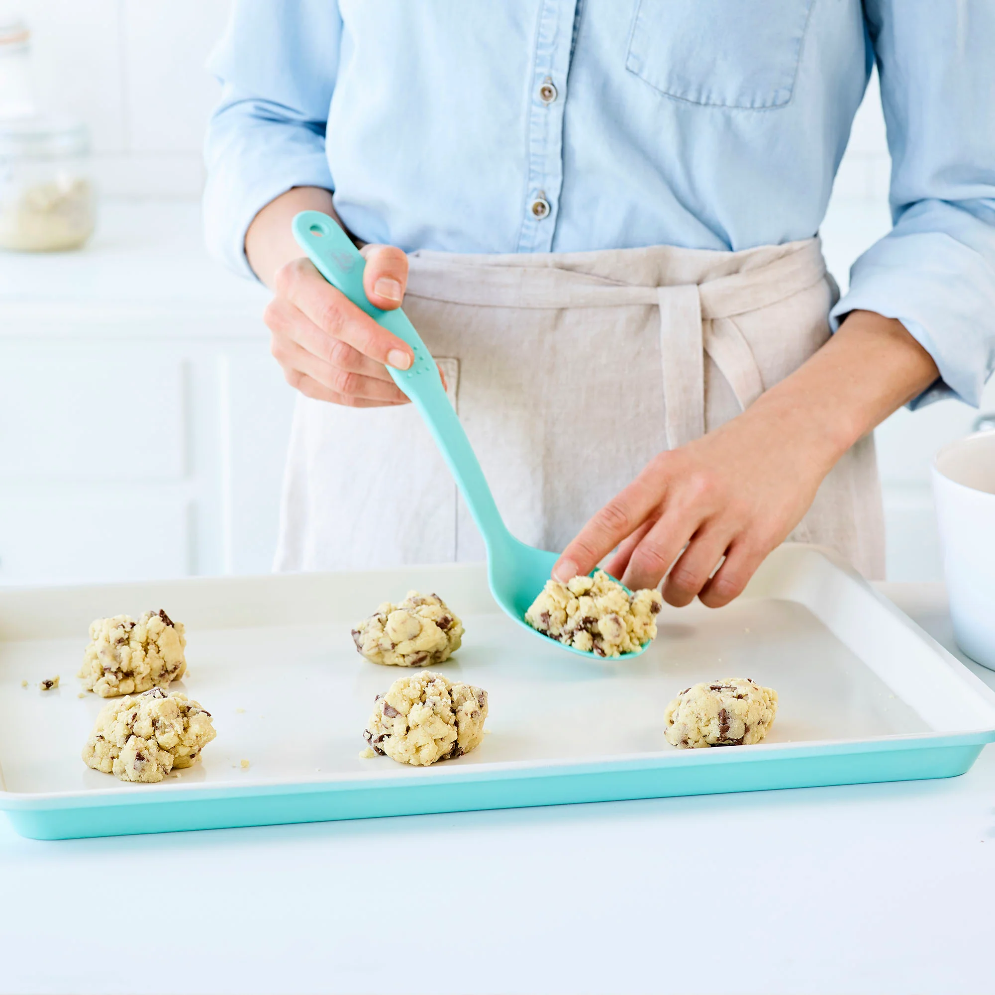 Cookie sheets: not just for cookies anymore! Our versatile pan handles everything from baked sweets to savory creations like nachos, chicken wings, or easy sheet-pan suppers. With a healthy ceramic nonstick coating, even the stickiest foods slide off easily—no greasing, cooking spray, or parchment paper required. Made of heavy-duty steel for quick and even heating, our pan is built to last through countless baking sessions. And the icing on the cake (or cookie)? The different colors brighten up any kitchen and make baking more fun than ever.